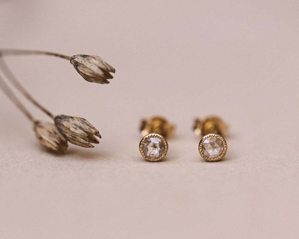 18ct Gold 3mm Rose-Cut Diamond Stud Earrings milled edges