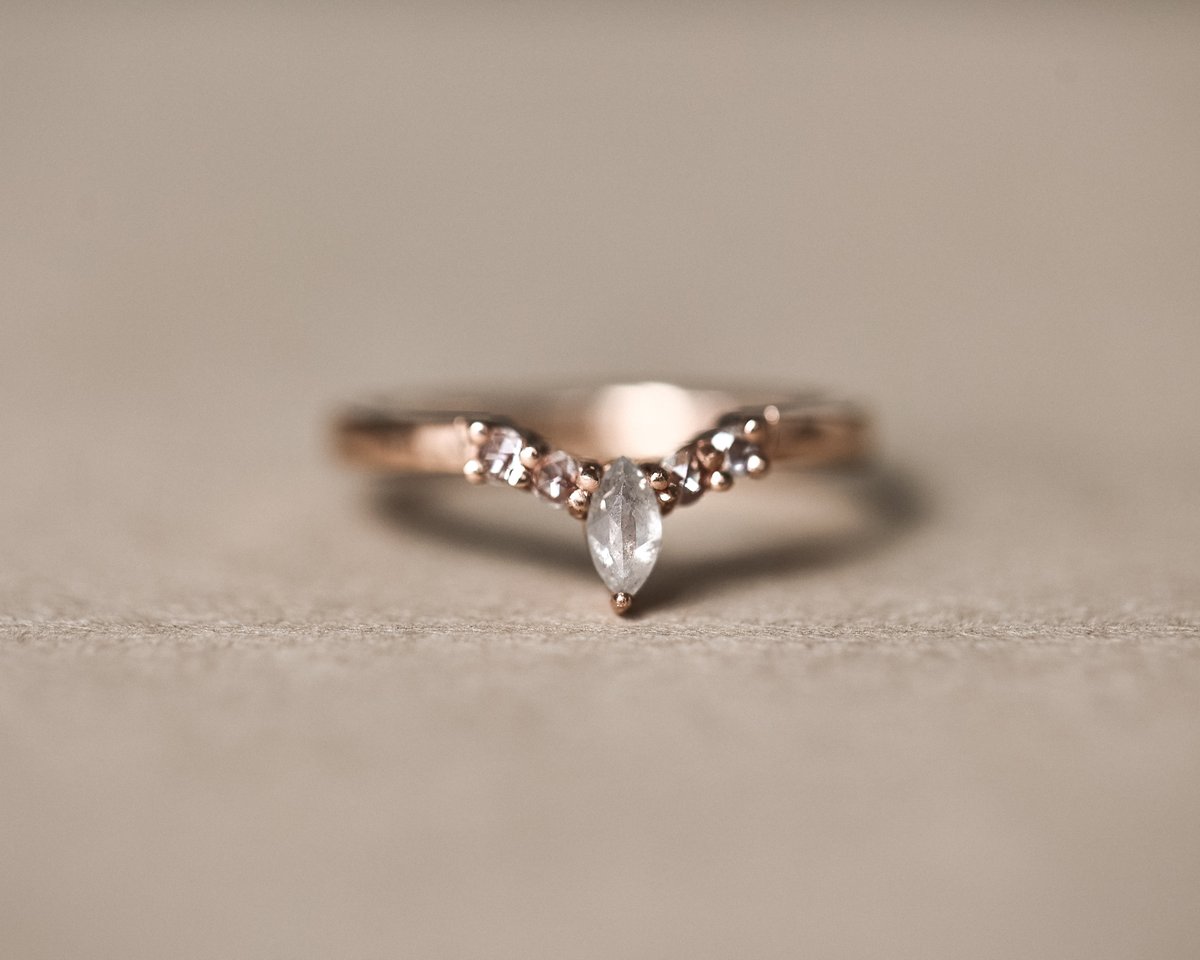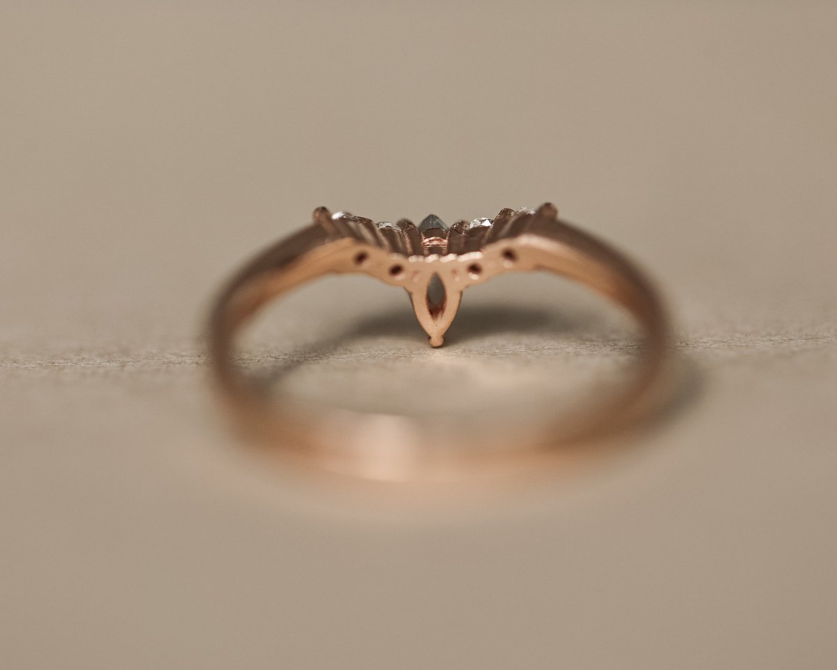 Featuring beautiful Rose-cut natural diamonds set in a gentle V shape within a claw setting.