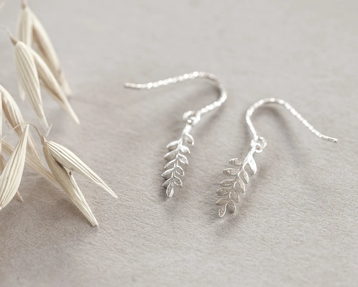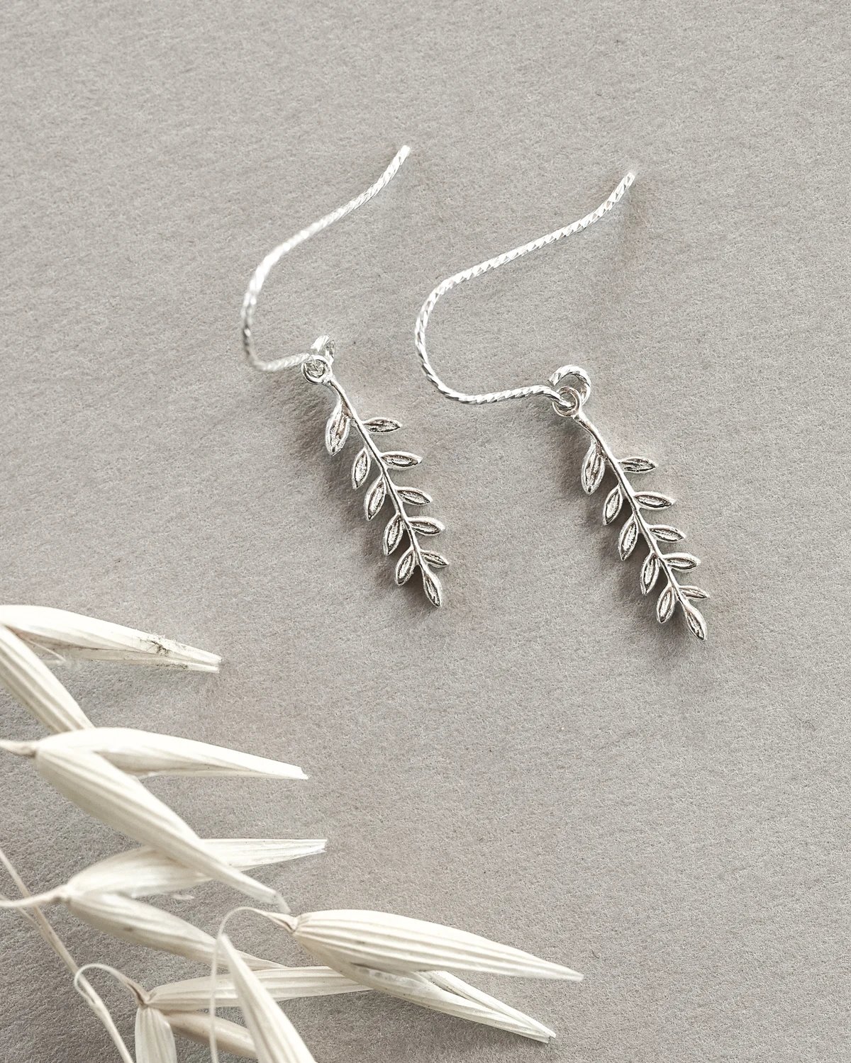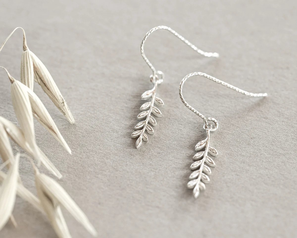 Beautiful gold fern leaf earrings with twisted wire hooks.