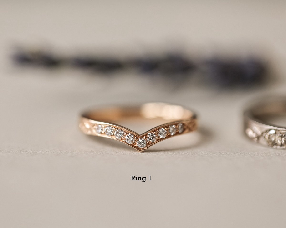 18ct Rose gold, 2mm semi eternity wishbone ring